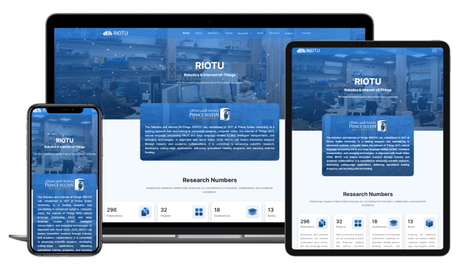RIOTU Lab website showcases the research, innovations, and initiatives of the Robotics and Internet-of-Things Lab at Prince Sultan University. Designed to reflect the lab’s focus on unmanned systems, IoT, computer vision, NLP, and emerging technologies, the site serves as a central platform for researchers, collaborators, and industry partners. I contributed to this project by developing and designing the website, ensuring a responsive and user-friendly interface that highlights the lab’s contributions, activities, and achievements in alignment with the lab's vision.